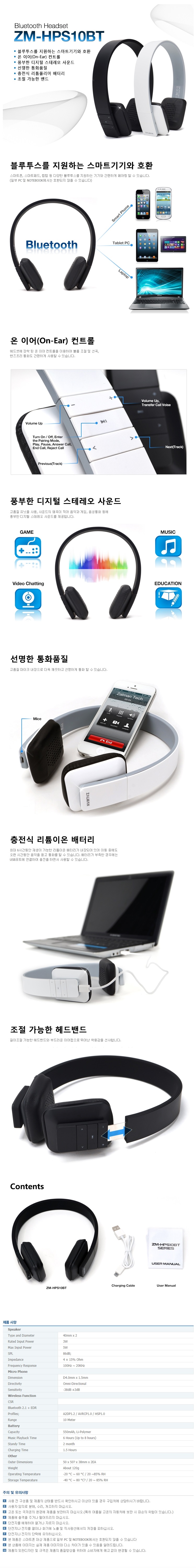 잘만 블루투스 헤드폰(ZM-HPS10BT)